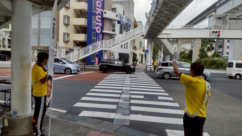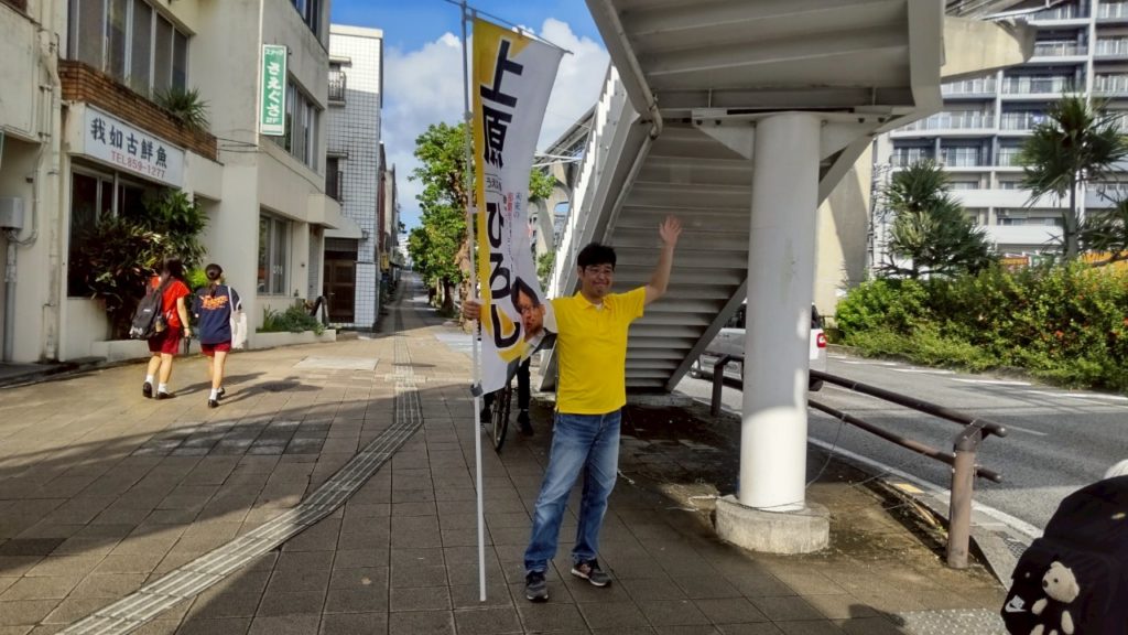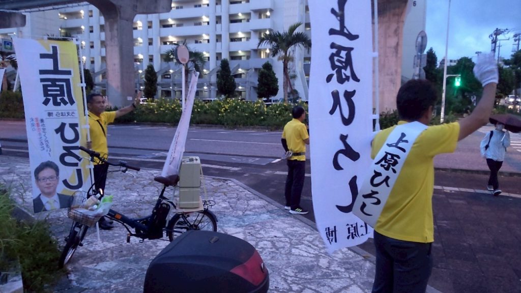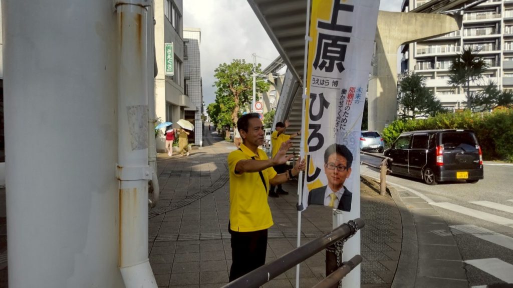 選挙活動最終日の締めは、道ジュネ~(後援会事務所➡田原自治会館前経由➡奥武山公園➡イオン那覇店➡後援会事務所 )を行いました。