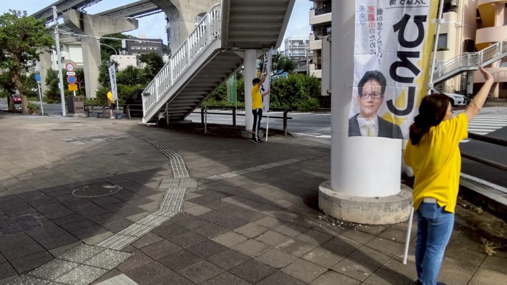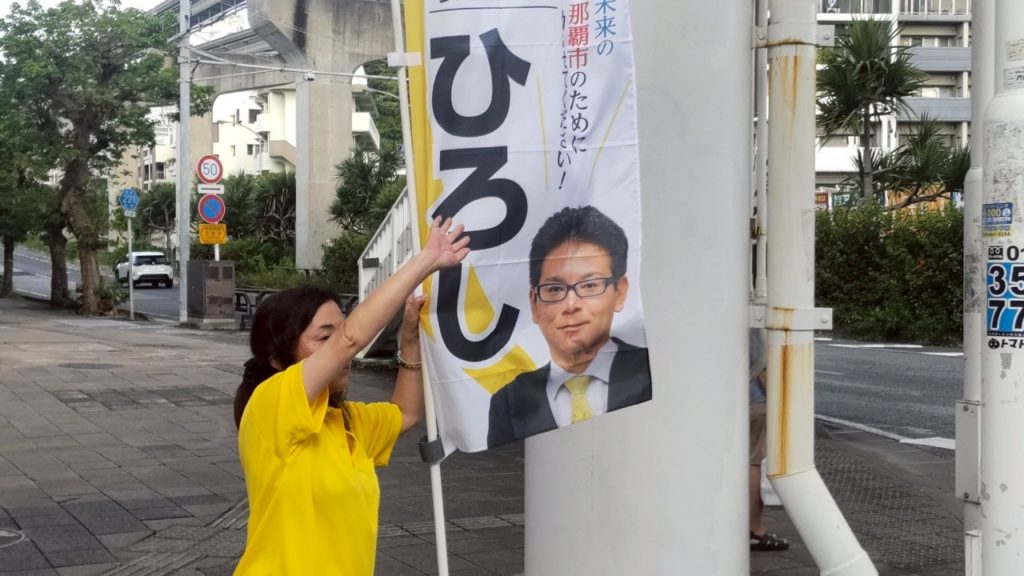 スタッフは那覇市中の公営掲示場にポスター貼りです!!