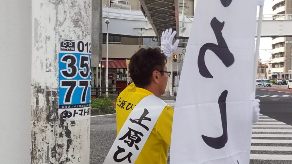 道ジュネ~では、大きな声で近隣の皆様に上原ひろしのPRを行いました。
